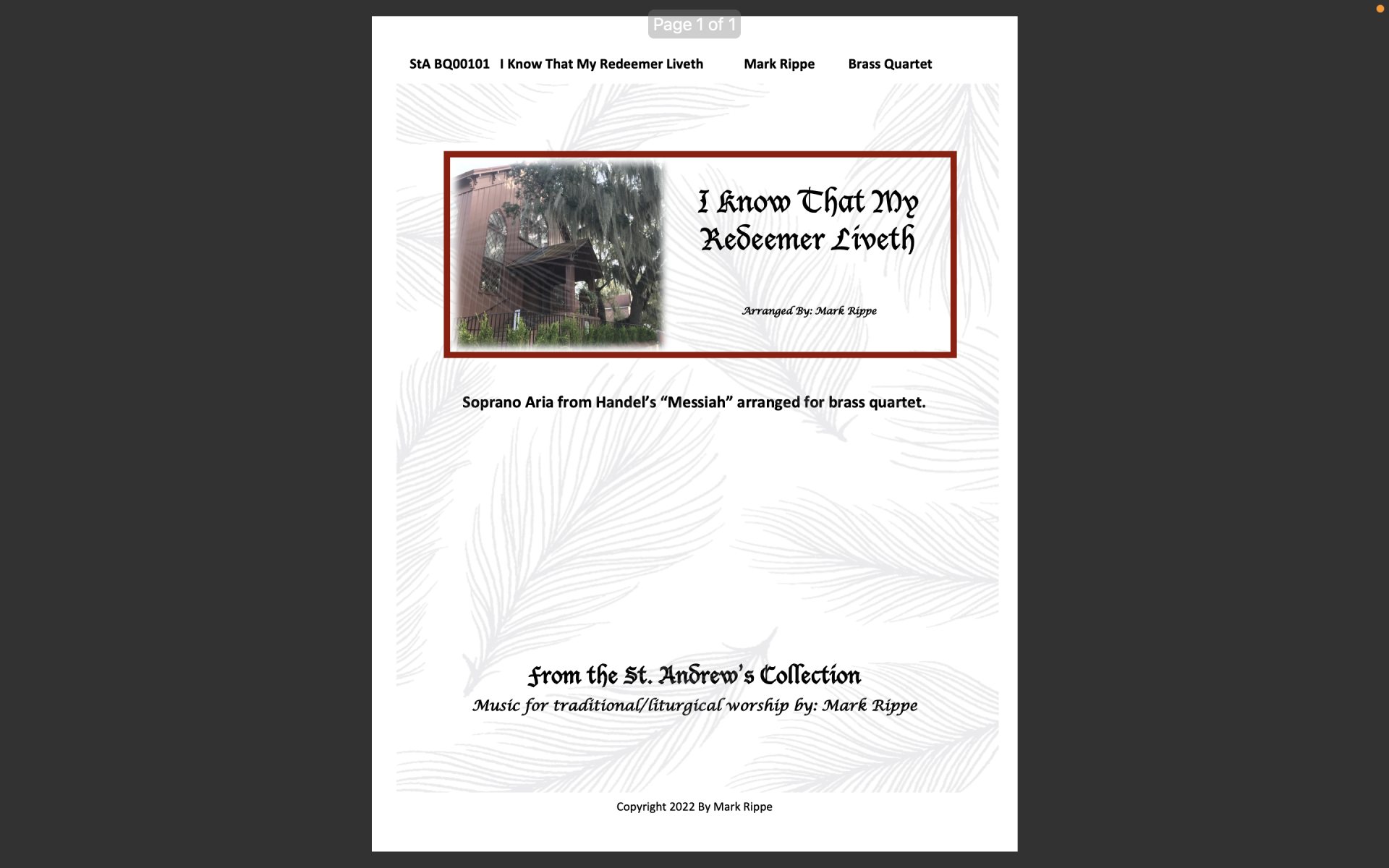 StA BQ00101. Easter. Arrangement for brass quartet of this well-known soprano aria from Handel’s “Messiah”. The same arrangement is available for brass quintet (BQ00113).