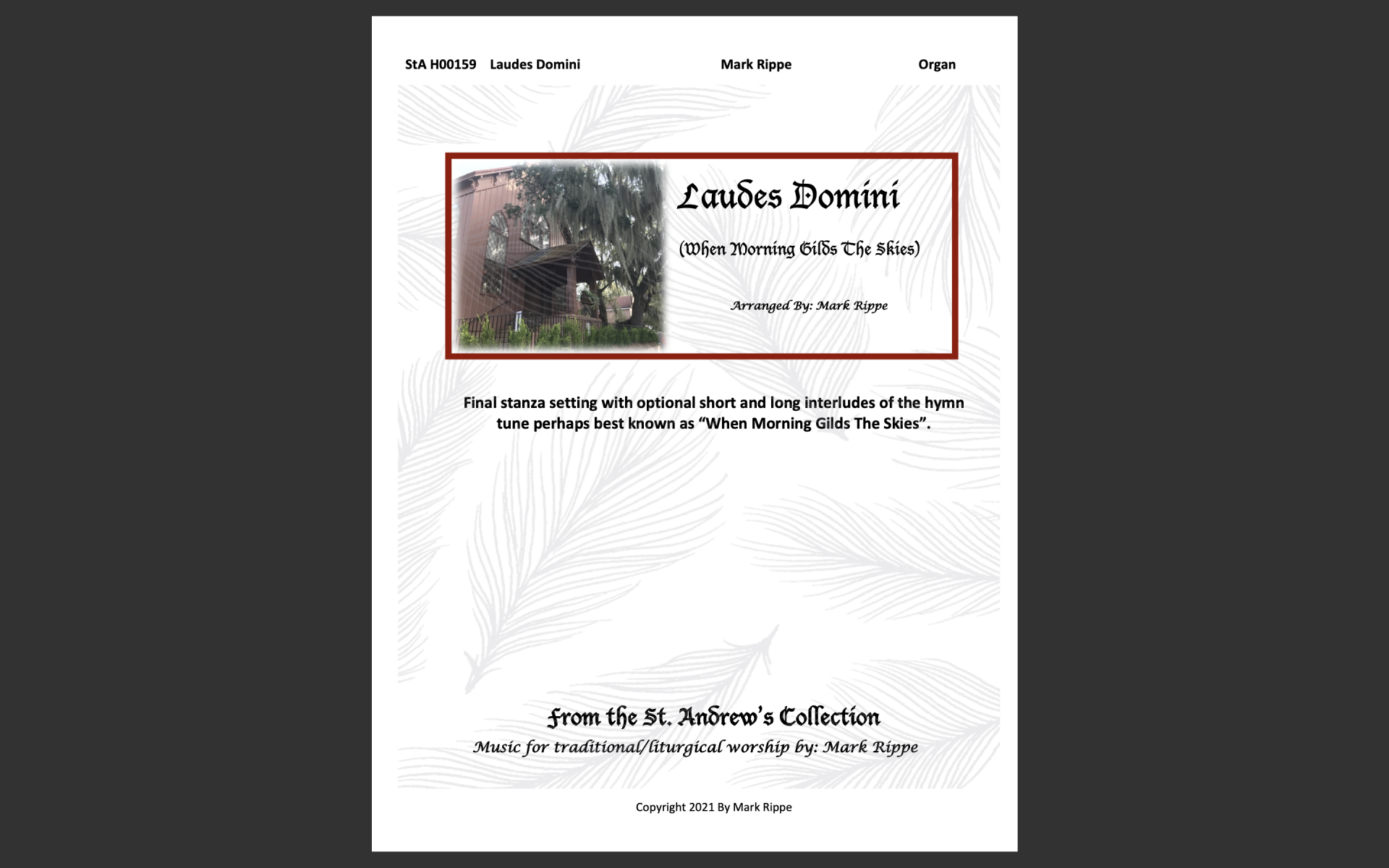 StA H00159. Final stanza setting with optional short and long interludes. The hymn tune “Laudes Domini” is best known as the hymn “When Morning Gilds The Skies”.