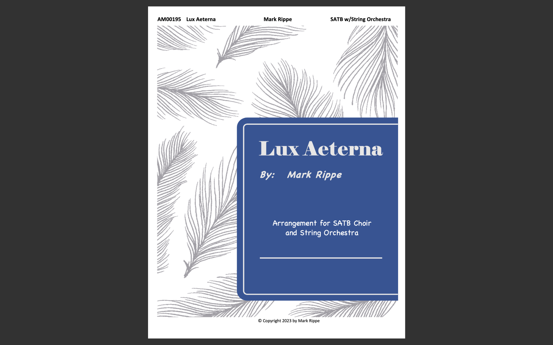 AM00195. String Orchestra and Chorus. Although not written specifically for the collection, its sacred nature warrants it being offered here at no cost. This work is also available scored for SATB choir with organ & string quartet accompaniment (StA C00190), and scored for SATB choir with organ and violin accompaniment (StA C00191).